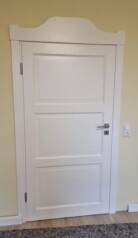 Drzwi klasyczne są najbardziej wszechstronną kolekcją pod względem wyboru szkła, opasek i innych dodatków. Szczególnym uznaniem cieszą się opaski zaoblone oraz frezowane. W przypadku tych frezowanych możemy również skusić się na zamontowanie koron nad drzwiami. Ta kolekcja doskonale współgra także ze szkłem ornamentowanym i witrażami.